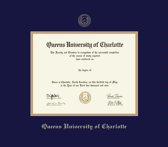 Queens University of Charlotte Diploma (7/13 to Present) Frame with Navy Blue and Gold Double Mat and Gold Embossing