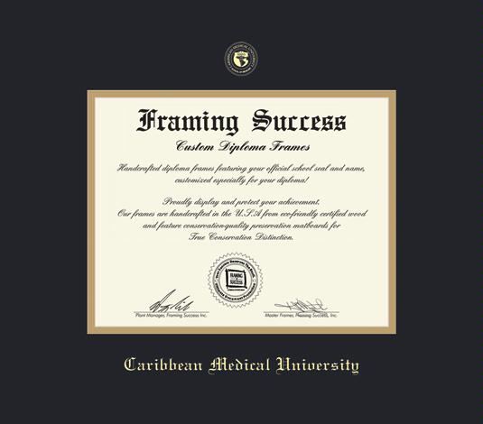 Caribbean Medical University Diploma Frame with Black and Gold Double Mat and Gold Embossing