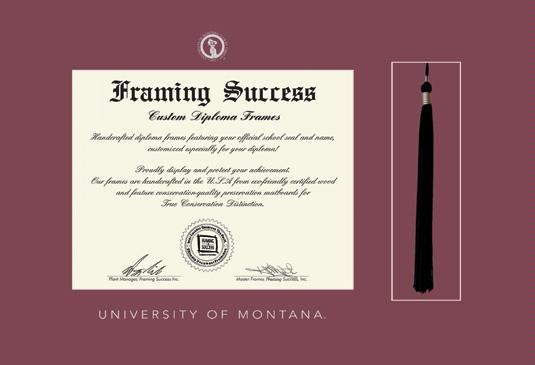 University of Montana Diploma - BA/MA/PhD (10/13 to Present) Frame with Tassel Cut-out and Maroon Mat and Silver Embossing
