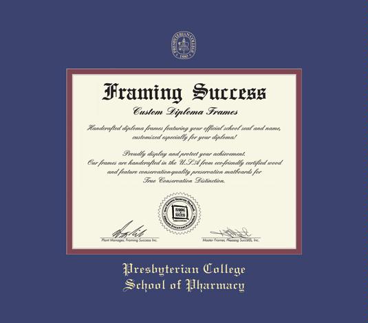 Presbyterian College School of Pharmacy Diploma Frame with Royal Blue and Maroon Double Mat and Gold Embossing