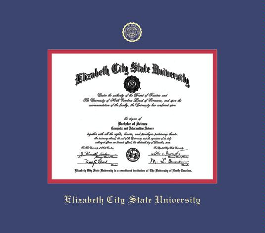 Elizabeth City State University Diploma Frame with Royal Blue and Red Double Mat and Gold Embossing