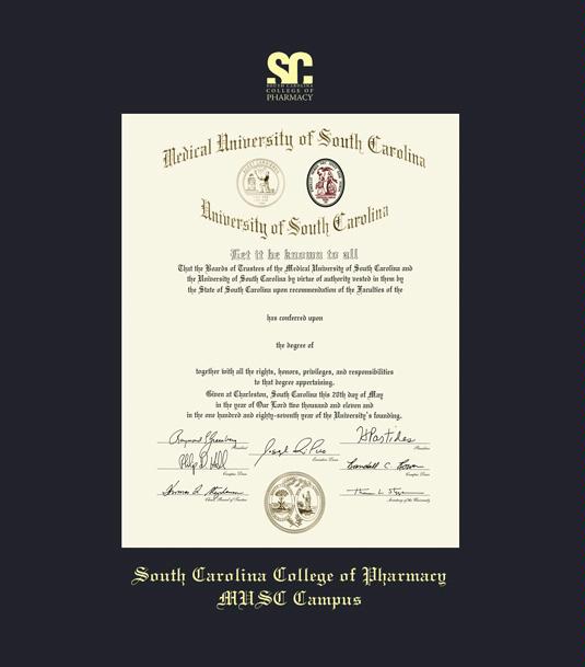 Medical University of South Carolina Diploma - Pharmacy (14"h x 11"w) Frame with Black Mat and Gold Embossing