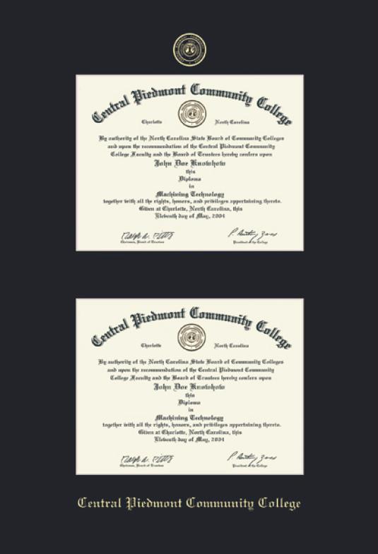 Central Piedmont Community College Double Diploma Frame with Black Mat and Gold Embossing