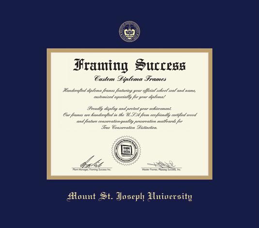 Mount St. Joseph University Diploma (7/14 to Present) Frame with Navy Blue and Gold Double Mat and Gold Embossing