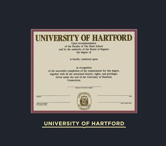 University of Hartford Diploma (8/14 to 9/21) Frame with Black and Maroon Double Mat and Gold Embossing