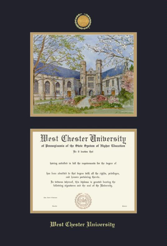 West Chester University Diploma - BA/MA and Litho Frame with Black and Gold Double Mat and Medallion Plus embossing