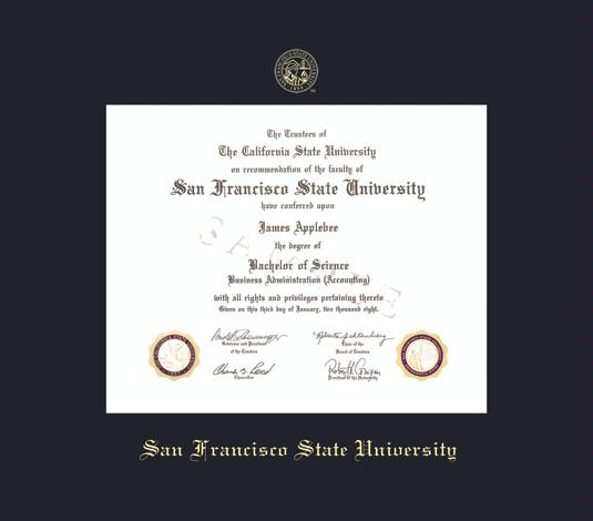 San Francisco State University Diploma (1/15 to Present) Frame with Black Mat and Gold Embossing