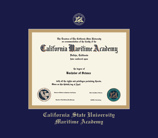 California State University Maritime Academy Diploma - MA (12/15 to Present) Frame with Navy Blue and Gold Double Mat and Gold Embossing