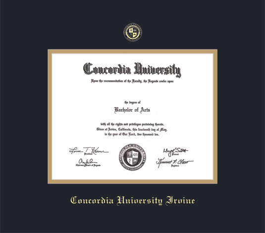 Concordia University Irvine Diploma (Pre 9/22) Frame with Black and Gold Double Mat and Gold Embossing