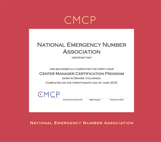 National Emergency Number Association Certificate - CMCP Frame with Red Mat and Gold Embossing