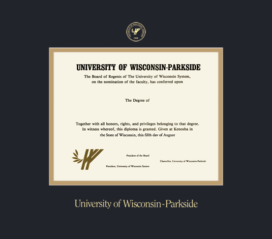 University of Wisconsin- Parkside Diploma Frame with Black and Gold Double Mat and Gold Embossing