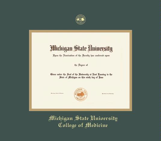 Michigan State University Diploma - College of Medicine Frame with Green and Gold Double Mat and Gold Embossing