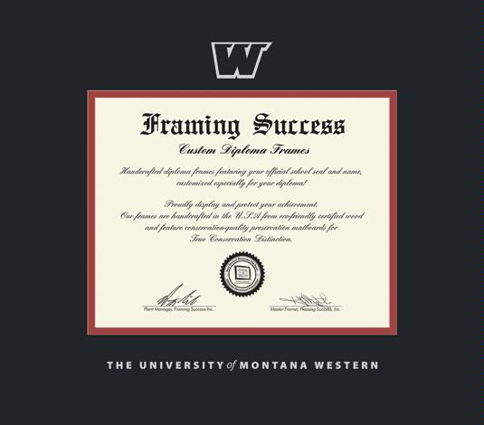 University of Montana Western Diploma Frame with Black and Red Double Mat and Silver Embossing