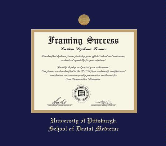 University of Pittsburgh Diploma - School of Dental Medicine (12x16) Frame with Medallion and Navy Blue and Gold Double Mat and Gold Embossing