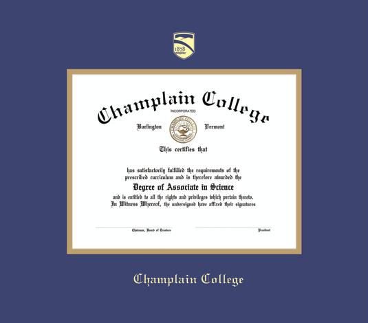 Champlain College Diploma - MA (Pre 10/19) Frame with Royal Blue and Gold Double Mat and Gold Embossing