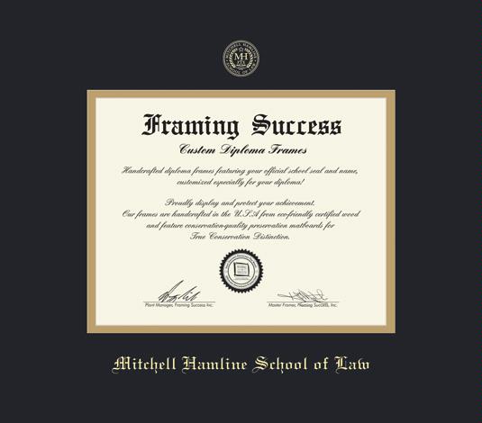 Mitchell Hamline School of Law Diploma (2016 to Present) Frame with Black and Gold Double Mat and Gold Embossing