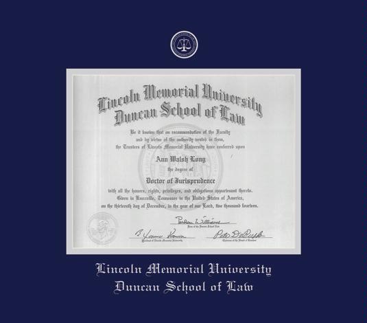 Lincoln Memorial University Duncan School of Law Diploma Frame with Navy Blue and Silver Double Mat and Silver Embossing