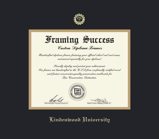 Lindenwood University Diploma - Doctorate Frame with Black and Gold Double Mat and Gold Embossing