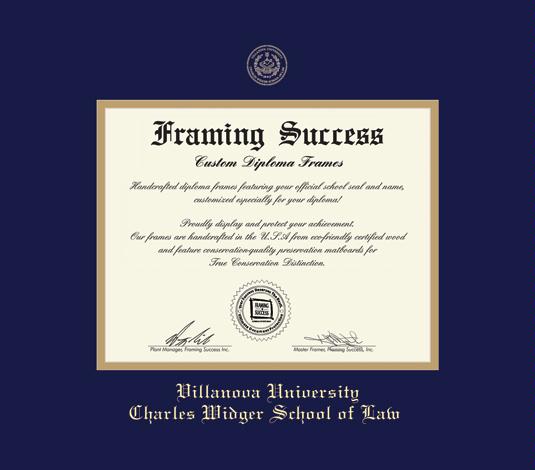Villanova University Diploma - Law (2017 to Present) Frame with Navy Blue and Gold Double Mat and Gold Embossing