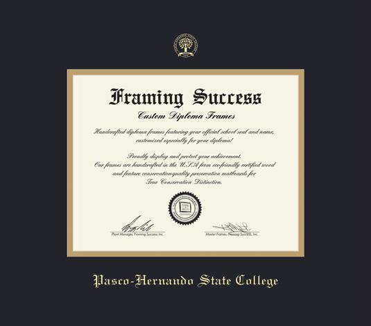 Pasco-Hernando State College Diploma - Associate (Pre 2025) Frame with Black and Gold Double Mat and Gold Embossing