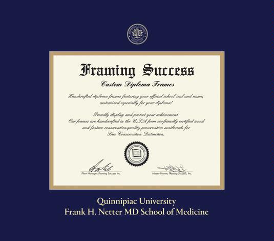 Quinnipiac University Diploma - MD (2017 to Present) Frame with Navy Blue and Gold Double Mat and Gold Embossing