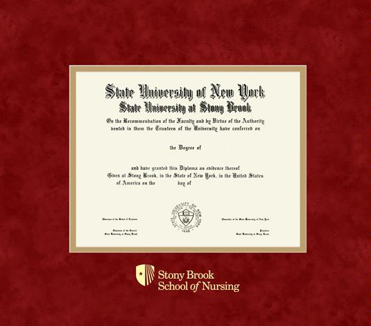 Stony Brook University Diploma - Nursing Frame with Red Suede and Gold Double Mat and Gold Embossing