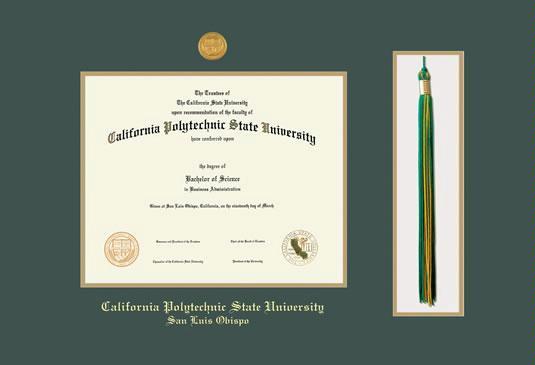 California Polytechnic State University - San Luis Obispo Diploma - (12/01 to Present) Frame with Tassel Cut-out and Green and Gold Double Mat and Gold Embossing