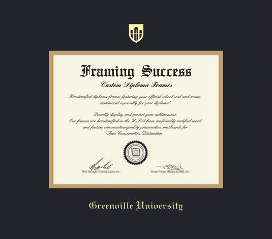 Greenville University Diploma (8/17 to Present) Frame with Black and Gold Double Mat and Gold Embossing