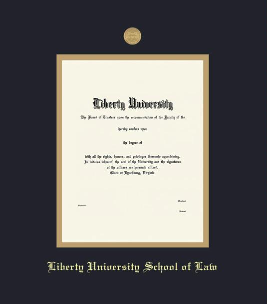 Liberty University Diploma - Law (2017 to Present) Frame with Medallion and Black and Gold Double Mat and Gold Embossing