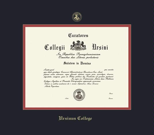 Ursinus College Diploma (2018 to 2023) Frame with Black and Red Double Mat and Gold Embossing