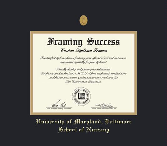 University of Maryland - Baltimore Diploma - School of Nursing (5/17 to Present) Frame with Medallion and Black and Gold Double Mat and Gold Embossing