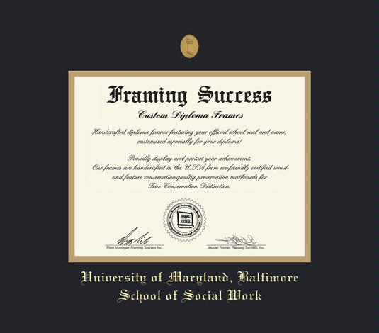 University of Maryland - Baltimore Diploma - School of Social Work (5/17 to Present) Frame with Medallion and Black and Gold Double Mat and Gold Embossing