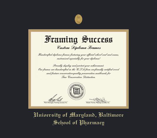 University of Maryland - Baltimore Diploma - School of Pharmacy (5/17 to Present) Frame with Medallion and Black and Gold Double Mat and Gold Embossing