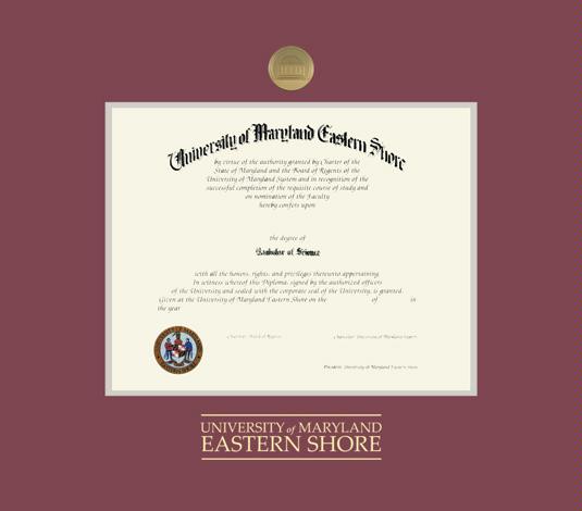 University of Maryland Eastern Shore Diploma - PhD (2018 to 11/21) Frame with Medallion and Maroon and Gray Double Mat and Gold Embossing