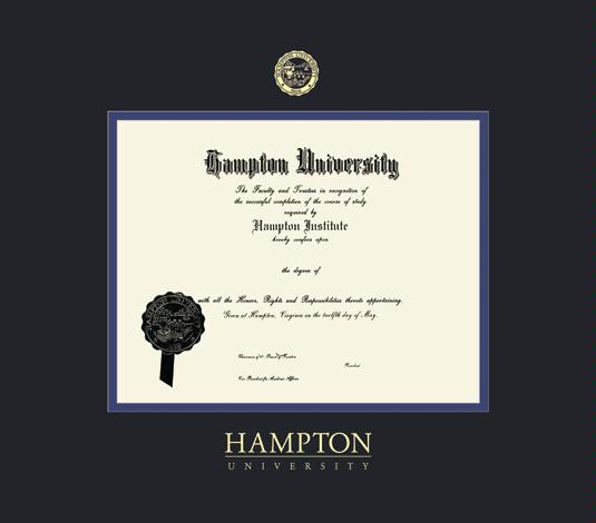 Hampton University Diploma (2018 to Present) Frame with Black and Royal Blue Double Mat and Gold Embossing