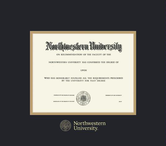 Northwestern University Diploma - BA/MA (2018 to Present) Frame with Black and Gold Double Mat and Gold Embossing