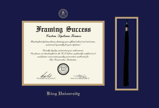 King University Diploma (5/17 to Present) Frame with Tassel Cut-out and Navy Blue and Gold Double Mat and Gold Embossing