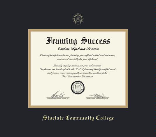 Sinclair Community College Diploma Frame with Black and Gold Double Mat and Gold Embossing