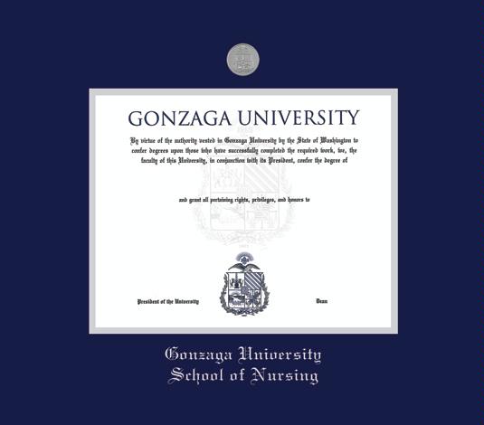 Gonzaga University Diploma - BA/MA Nursing (Pre 2019) Frame with Medallion and Navy Blue and Silver Double Mat and Silver Embossing