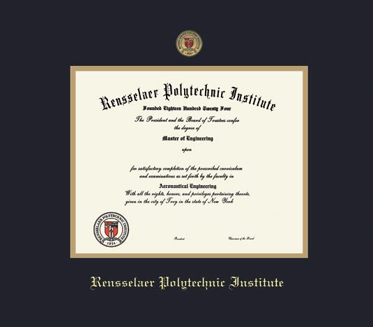 Rensselaer Polytechnic Institute (NY) Diploma (7/18 to Present) Frame with Medallion and Black and Gold Double Mat and Gold Embossing