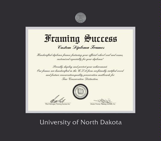 University of North Dakota Diploma - PhD (7/18 to Present) Frame with Medallion and Black and Silver Double Mat and Silver Embossing