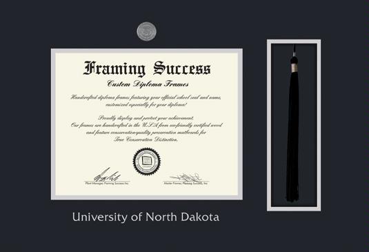 University of North Dakota Diploma - BA/MA (7/18 to Present) Frame with Medallion and Tassel Cut-out and Black and Silver Double Mat and Silver Embossing