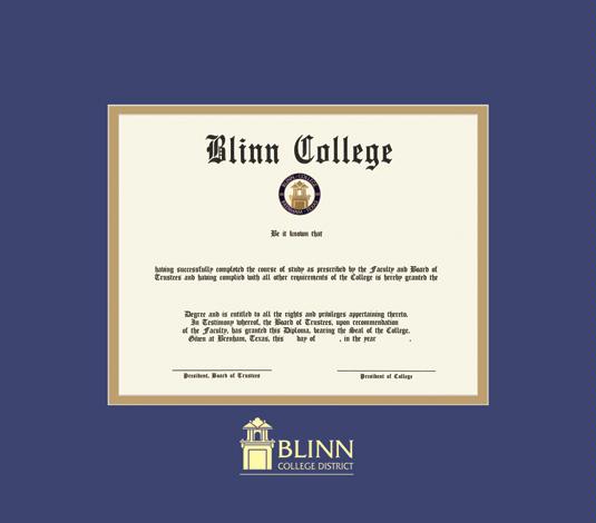 Blinn College Diploma (7/18 to Present) Frame with Royal Blue and Gold Double Mat and Gold Embossing