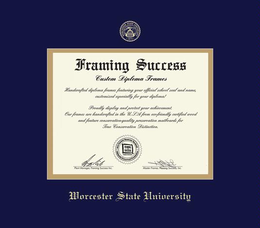 Worcester State University Diploma (7/18 to Present) Frame with Navy Blue and Gold Double Mat and Gold Embossing