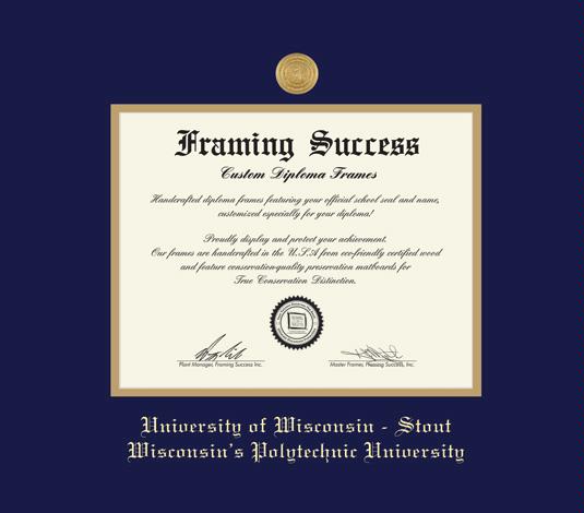 University of Wisconsin- Stout Diploma - Doctorate Frame with Medallion and Navy Blue and Gold Double Mat and Gold Embossing