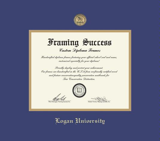 Logan University Diploma - BA/MA (Pre 2022) Frame with Medallion and Royal Blue and Gold Double Mat and Gold Embossing