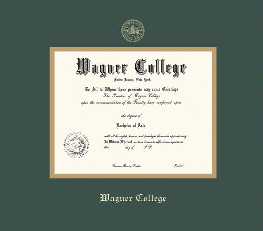 Wagner College Diploma (9/18 to Present) Frame with Green and Gold Double Mat and Gold Embossing