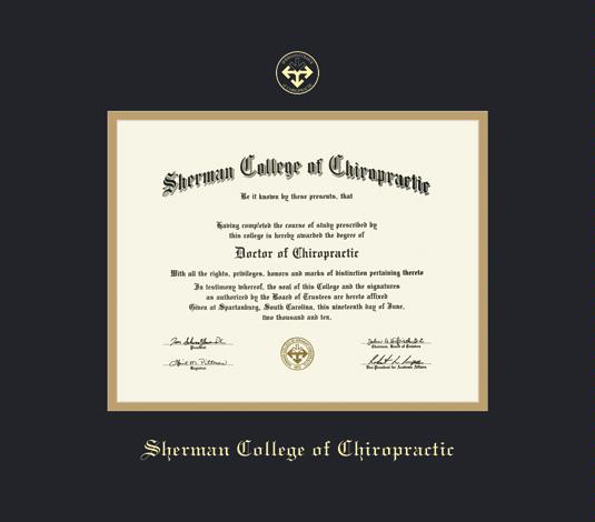Sherman College of Chiropractic Diploma (2017 to Present) Frame with Black and Gold Double Mat and Gold Embossing