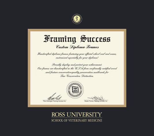 Ross University Diploma - School of Veterinary Medicine (Pre 4/22) Frame with Black and Gold Double Mat and Gold Embossing