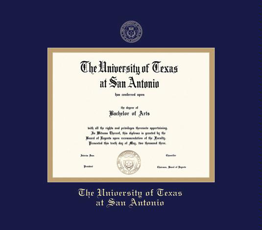 University of Texas at San Antonio Diploma (10/18 to Present) Frame with Navy Blue and Gold Double Mat and Gold Embossing